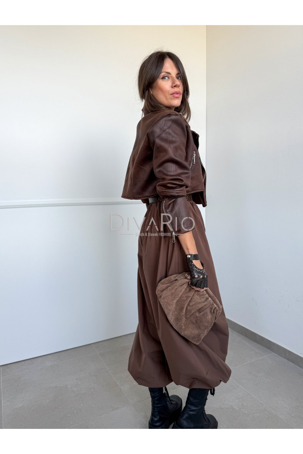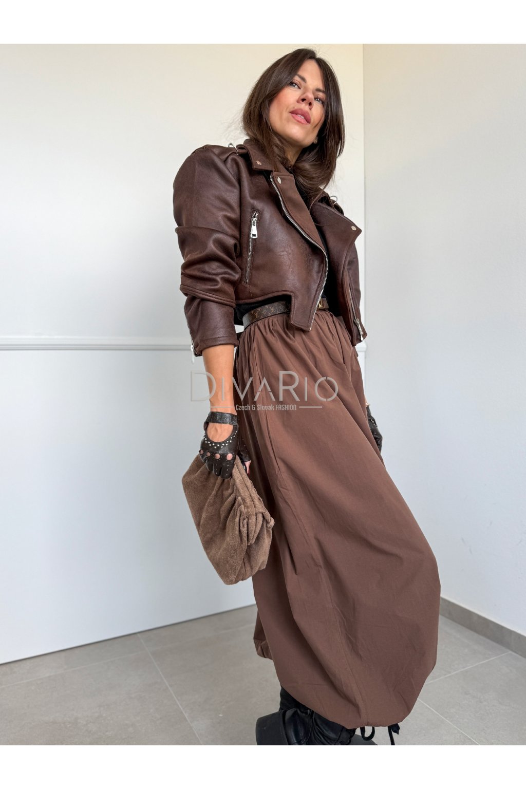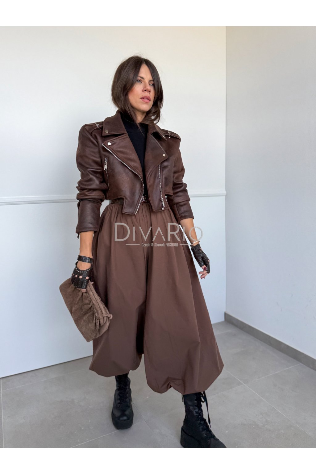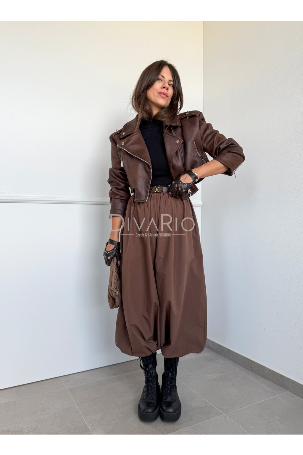 Balónové nohavice s čokoládovej hnedej farbe. V pase gumička, na spodku uzke manžety.