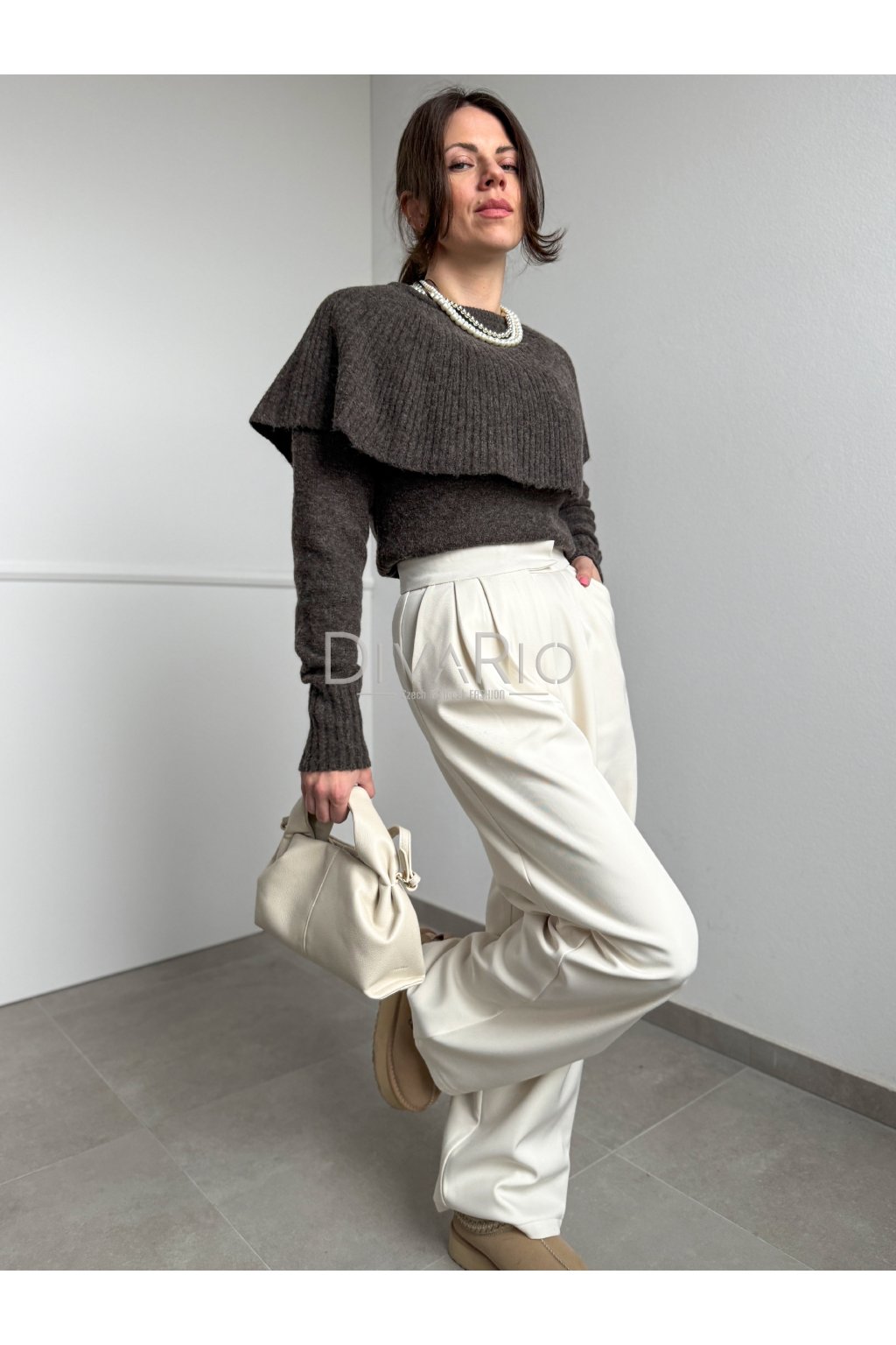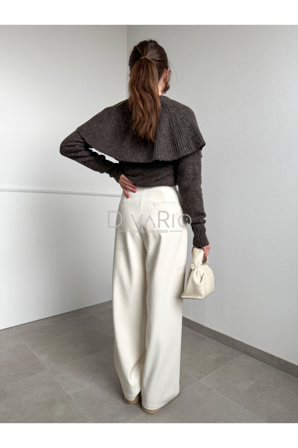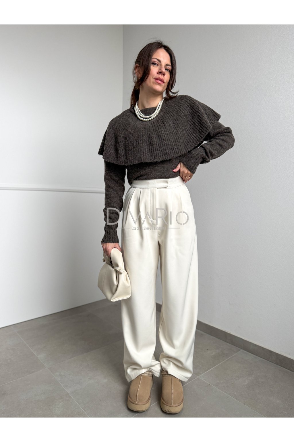 Krímové široké elegantné nohavice, vysoký pas, vrecká, teplé vnútro.