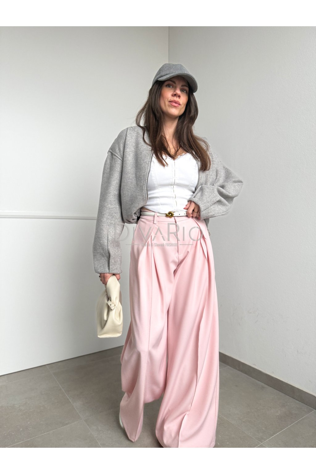 Ružové široké nohavie, baby pink ružová farba.