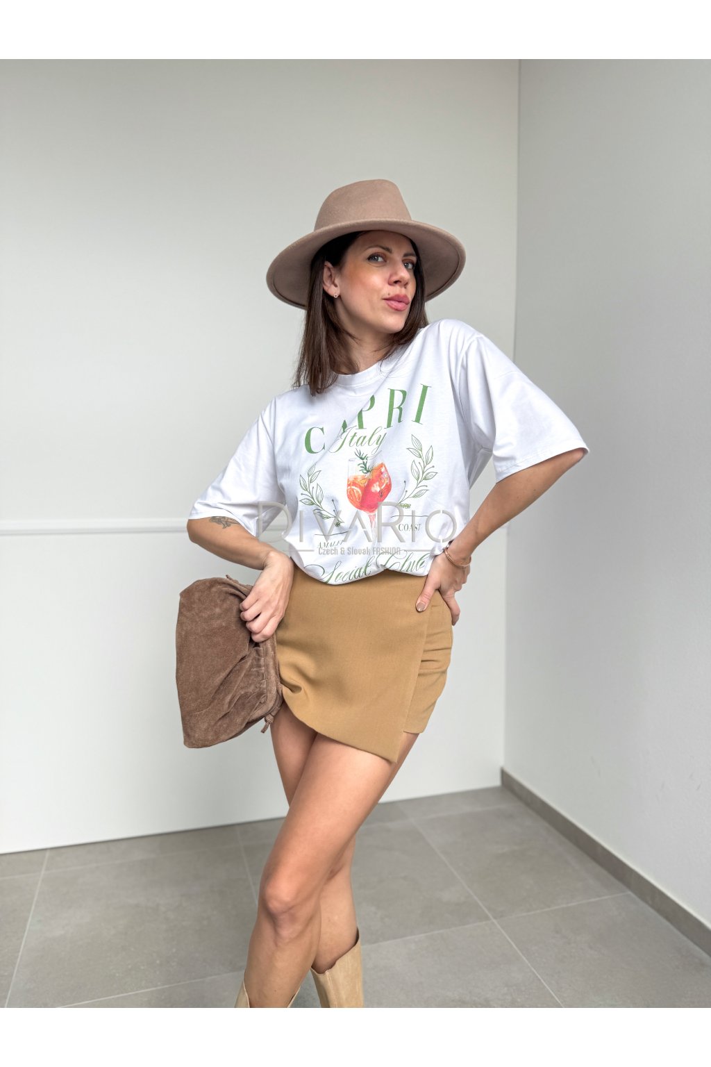Overisize biele tričko s farbenou potlačou,, krátky rukáv, predĺžený strih.