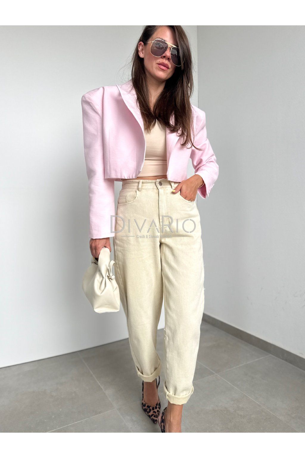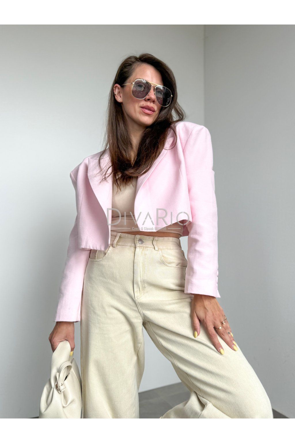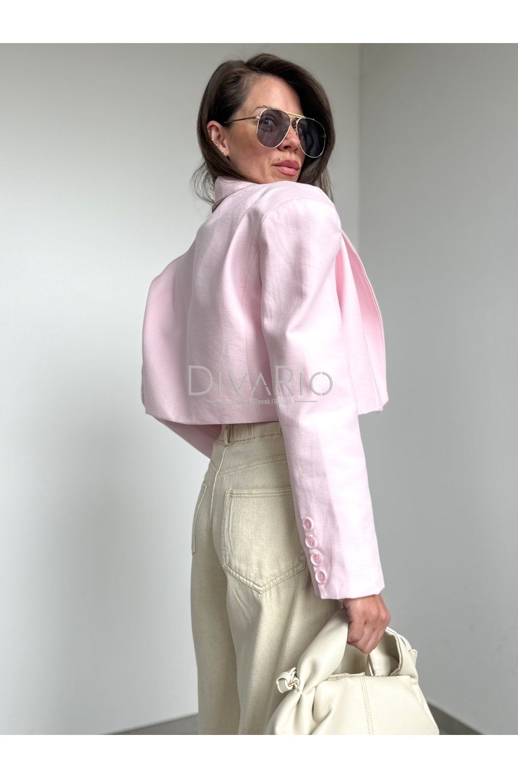 Skrátené sako v jemnej ružovej farbe, futrované, dlhý rukáv, bez zapínania, top kvalita.