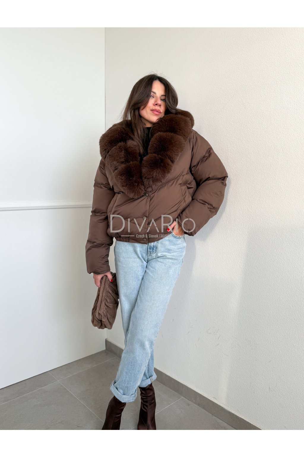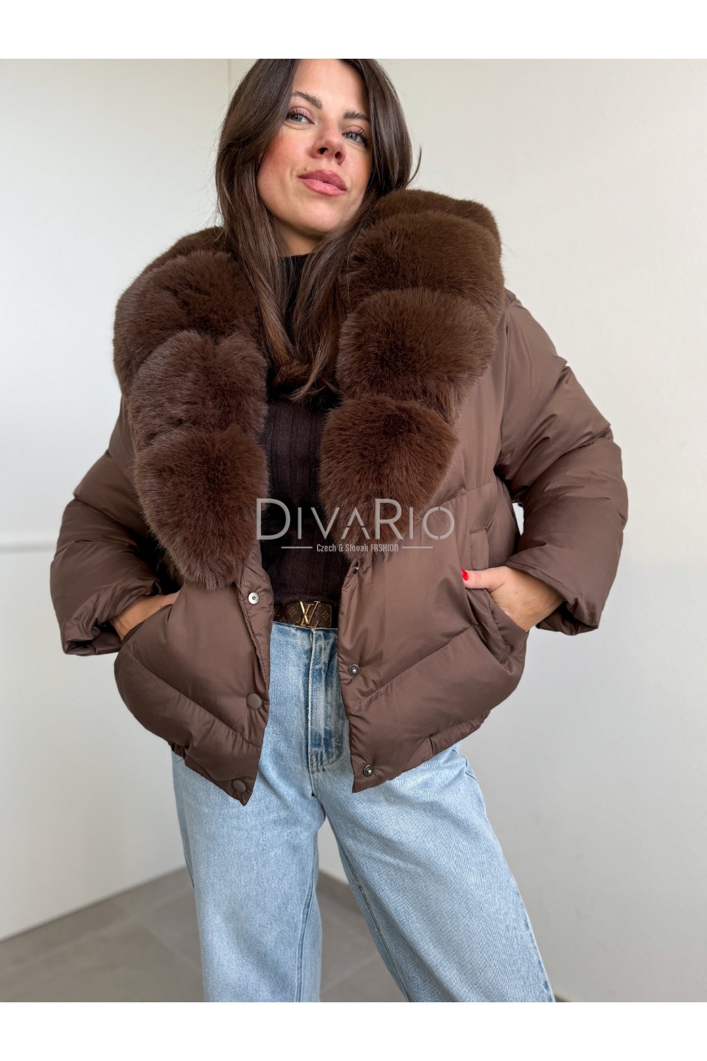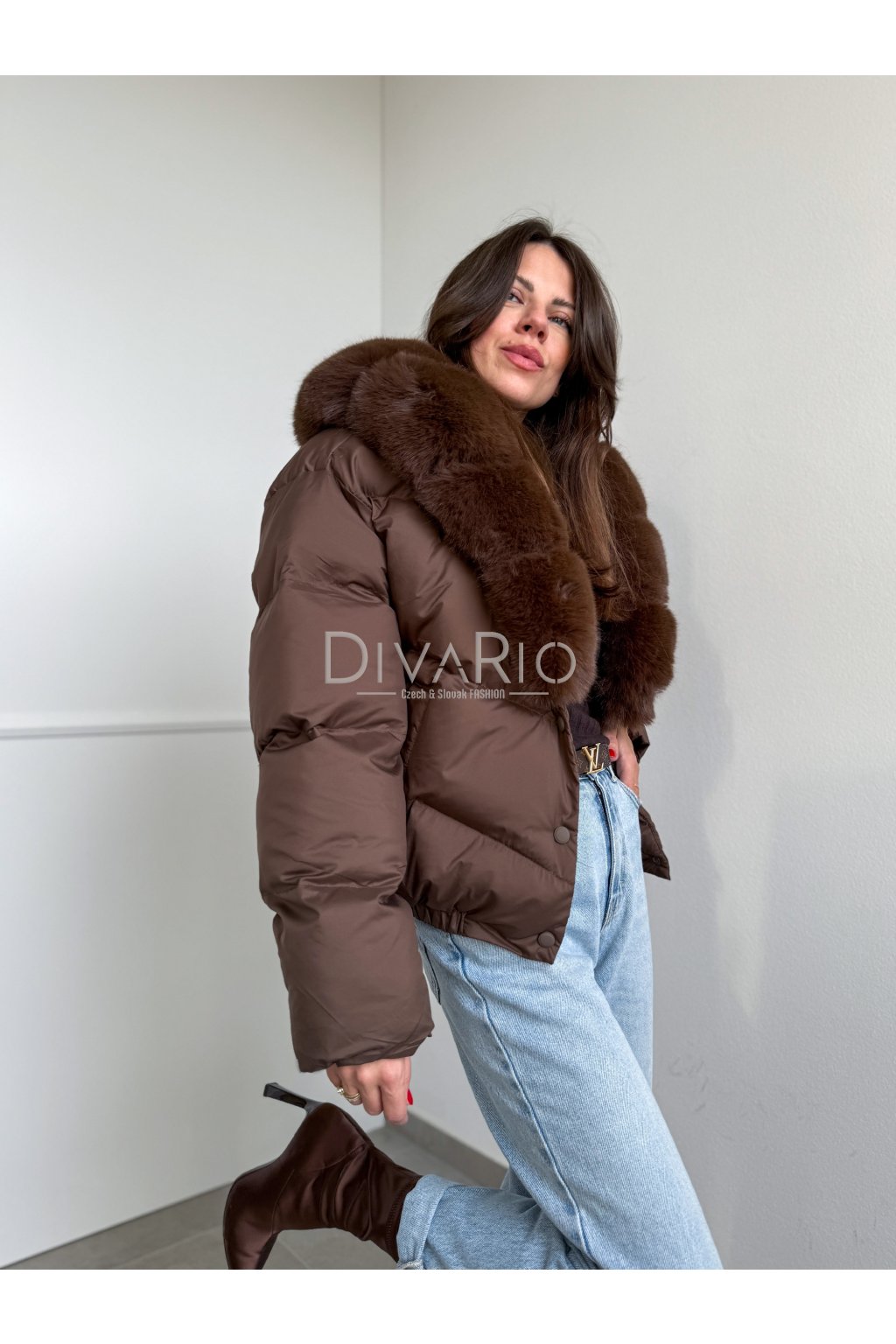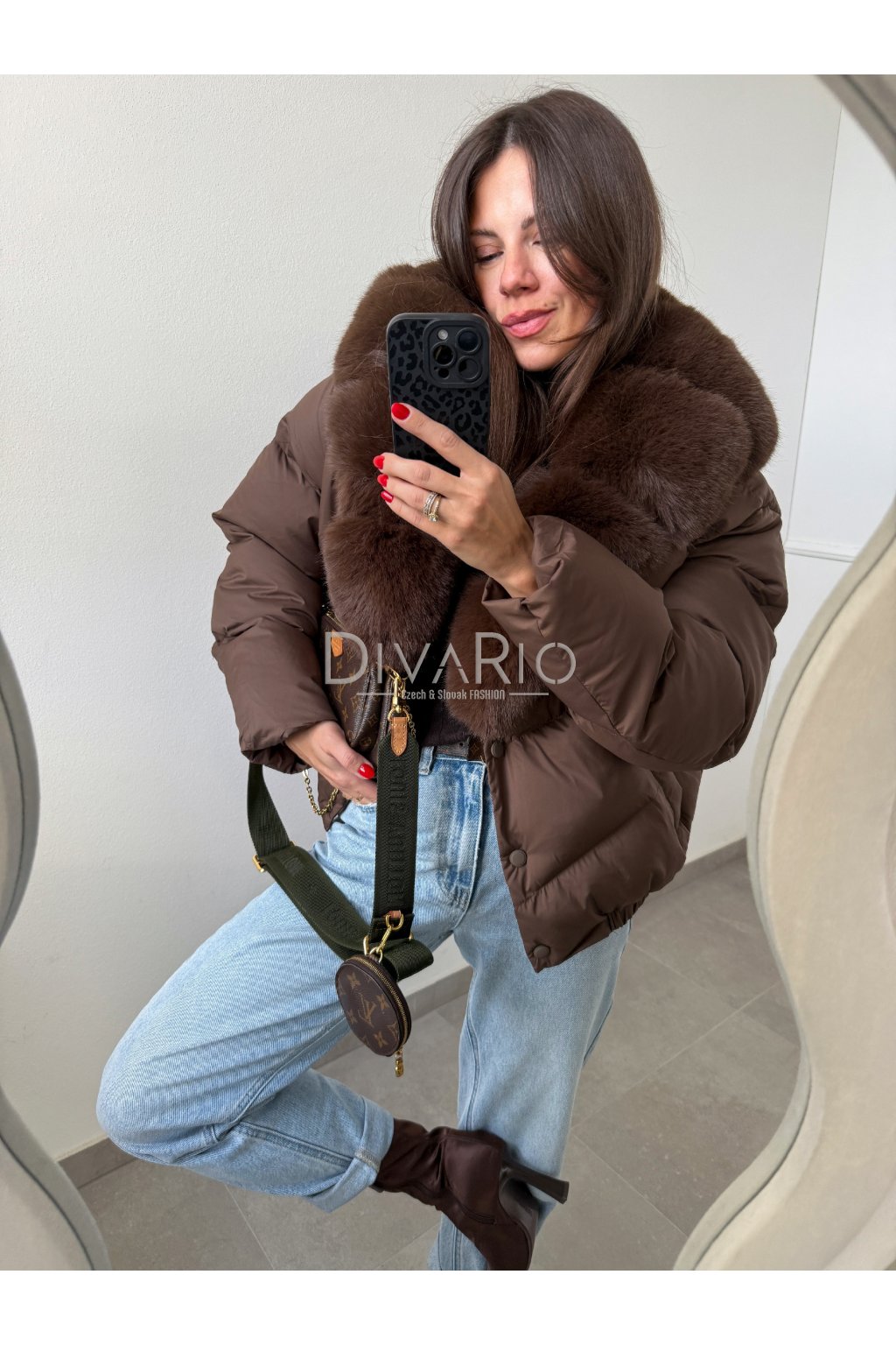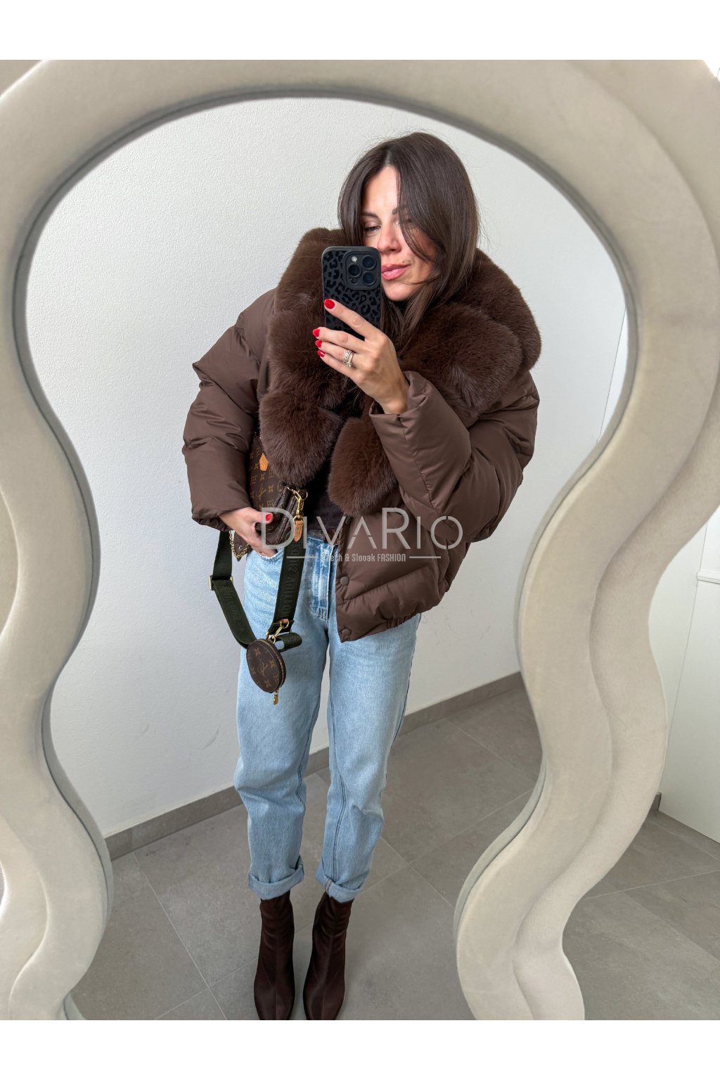 Zimná tmavo hendá bunda s mohutným kožušinovým golierom. Dlhý rukávm zapínanie na gombíky. TOP kvalita.