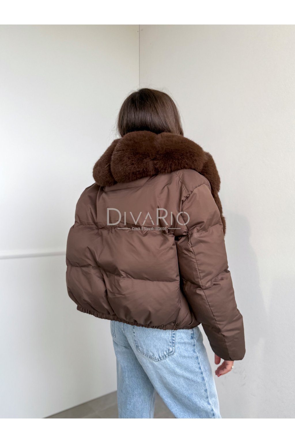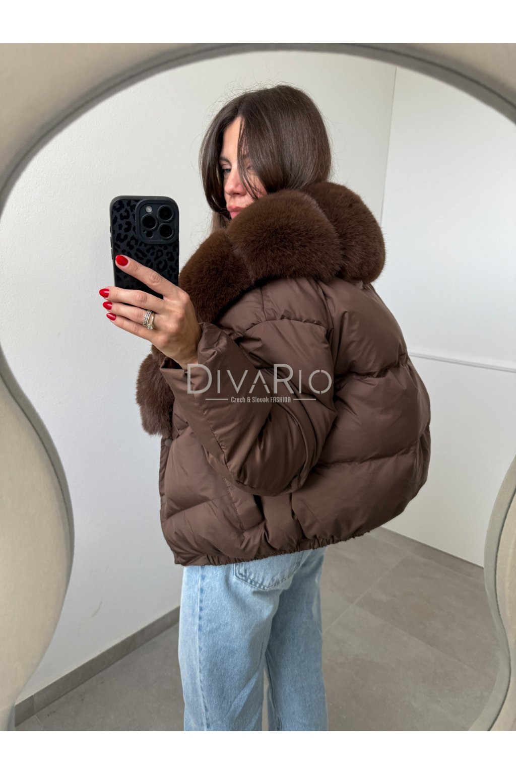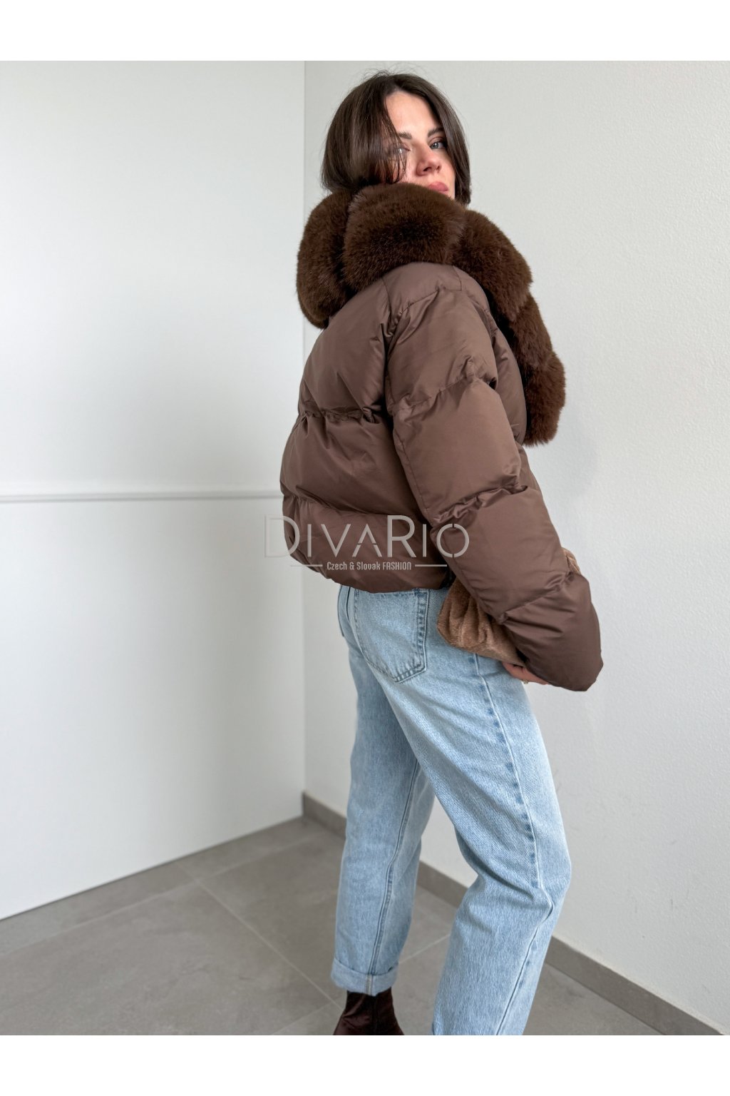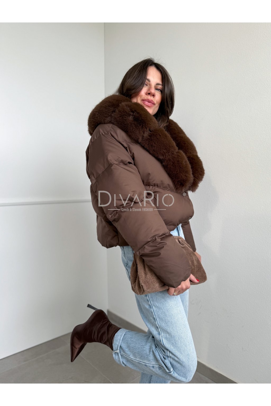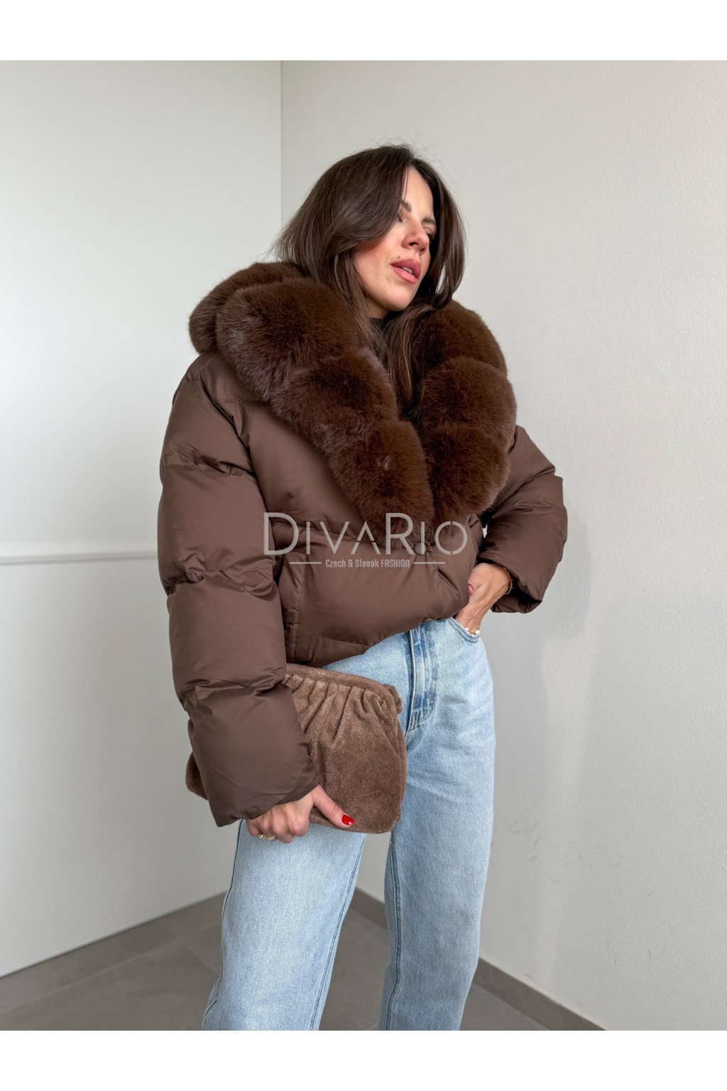 Zimná tmavo hendá bunda s mohutným kožušinovým golierom. Dlhý rukávm zapínanie na gombíky. TOP kvalita.