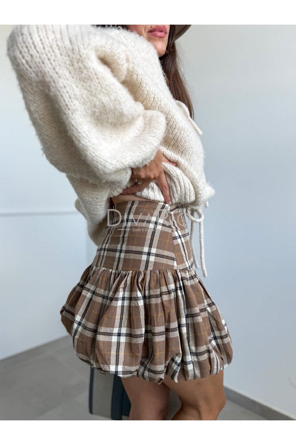 Karovaná mini sukňa. Zapínanie na zips. Pevný pas. Ačková sukňa.