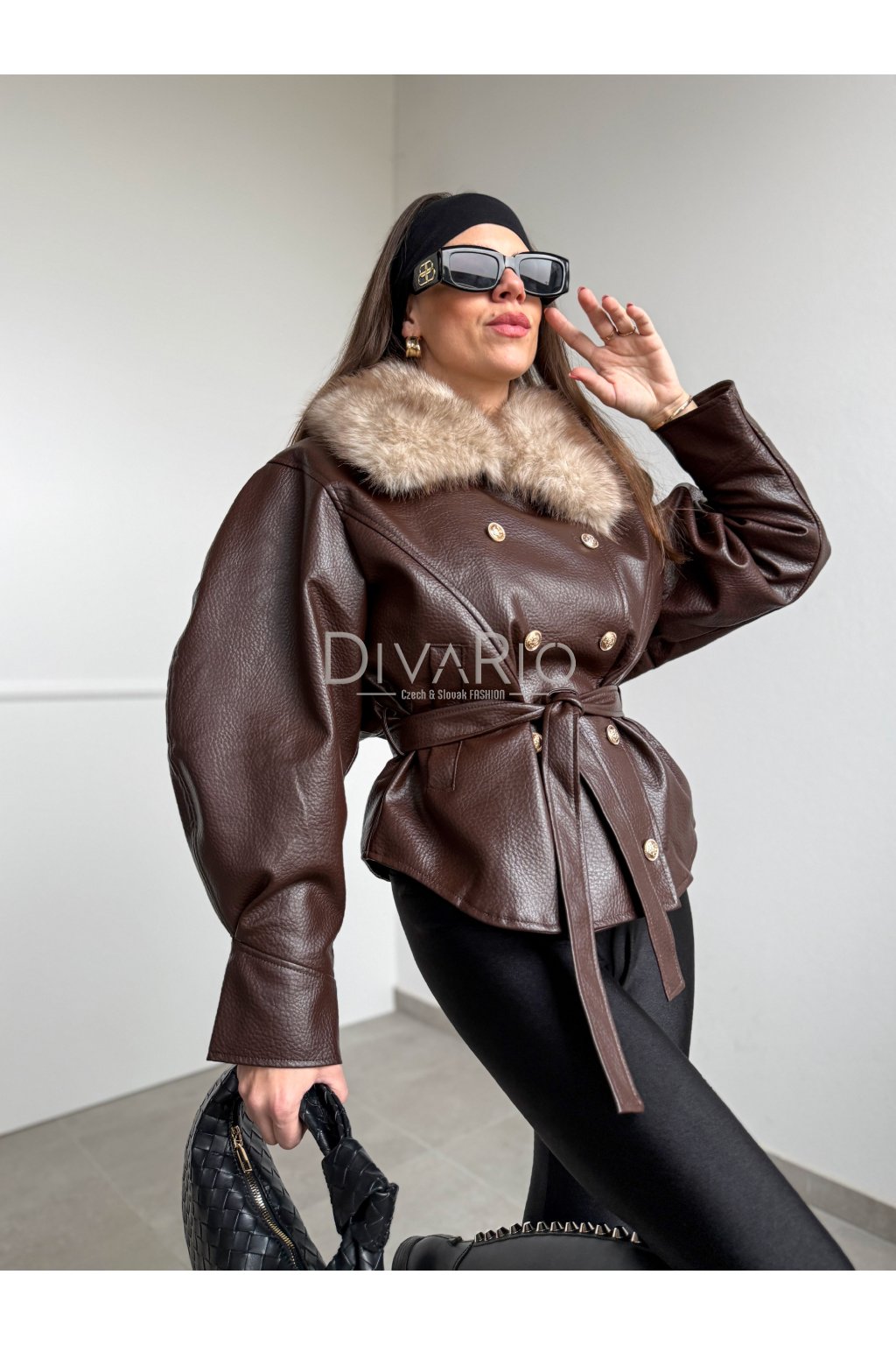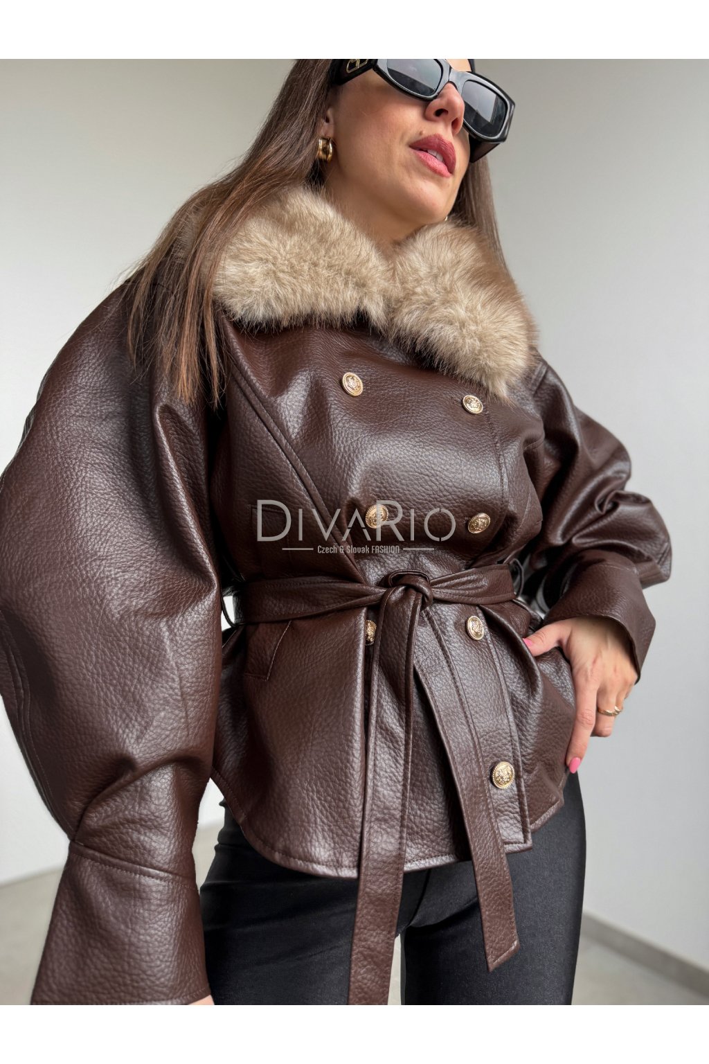 Oversize vyteplená koženková bunda v tmavo hnedej farbe s mohutnou kožušinou na golieri. Balonové dlhé rukávy. Top kvalita. Kožušina sa dá odopnúť, vnútro je vyteplené kožušinkou. Mäkká koženka. Zapínanie na zlaté gombíky a koženkový opasok. Veľkosť UNI sedi od XS po M. Predobjednavka - dodanie cca 7 dni.