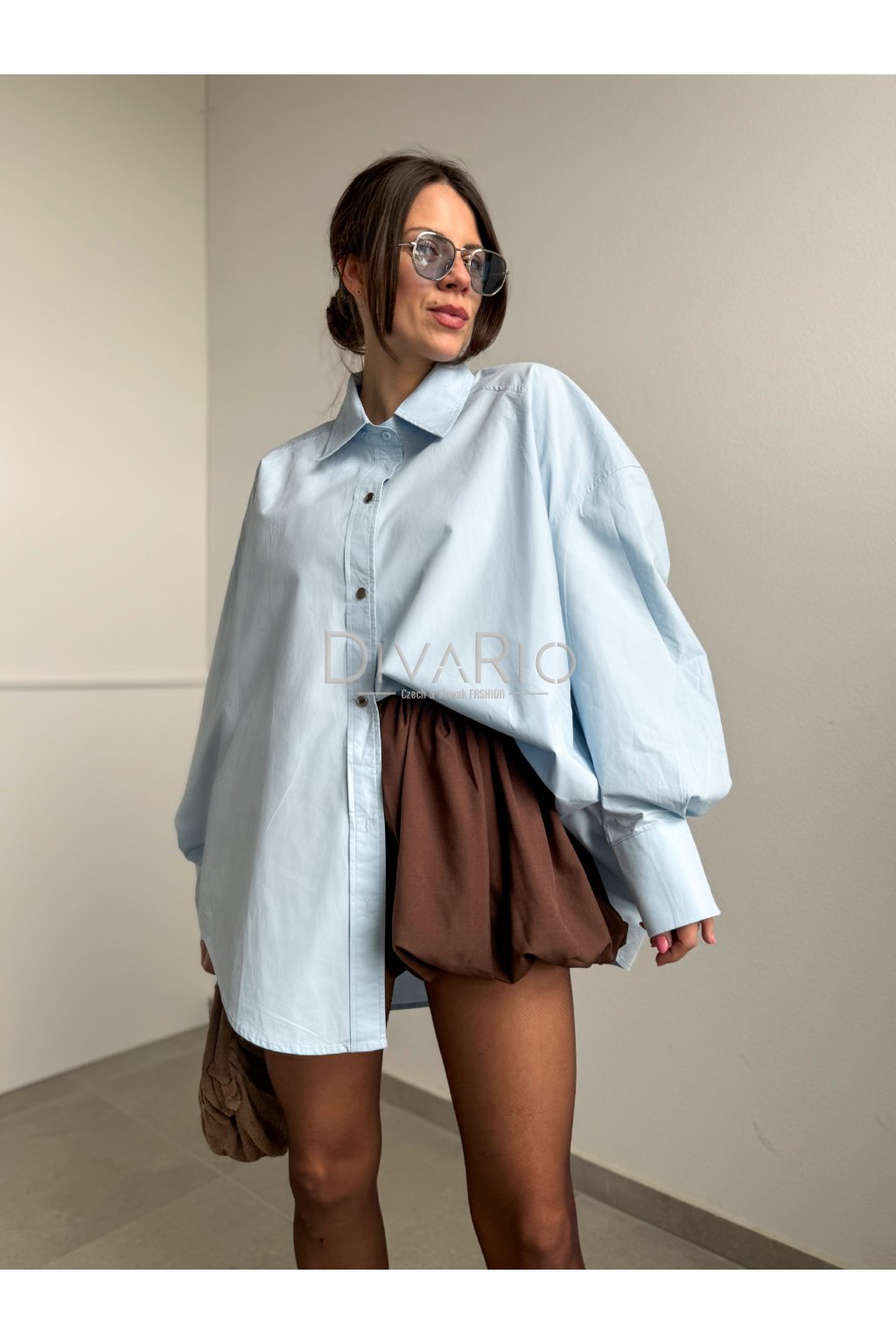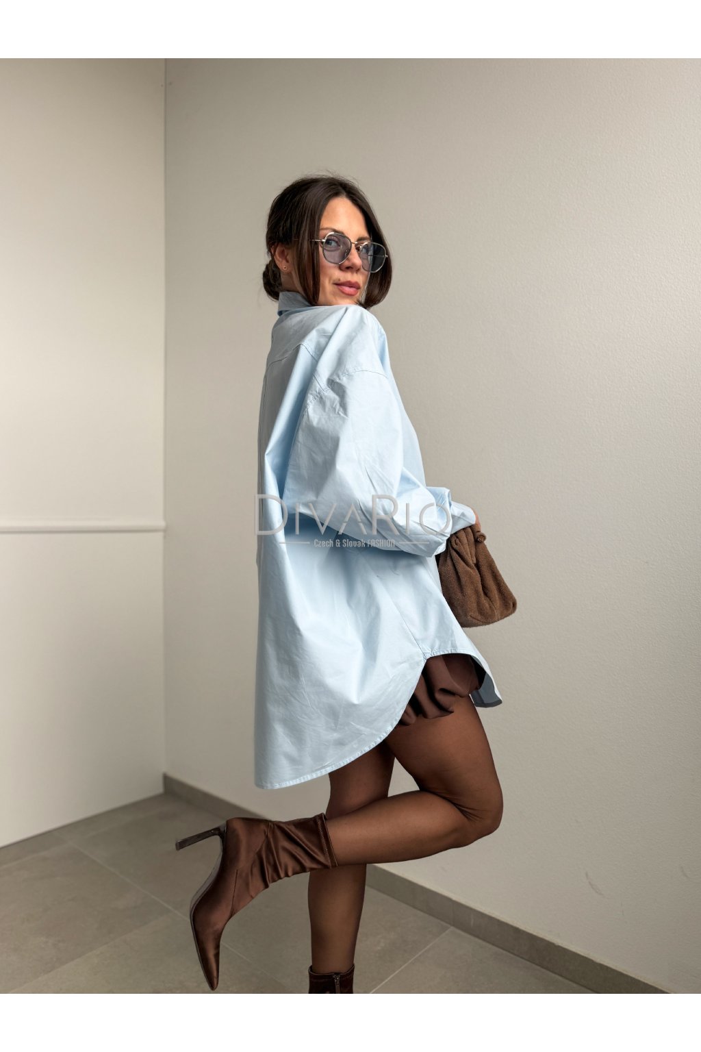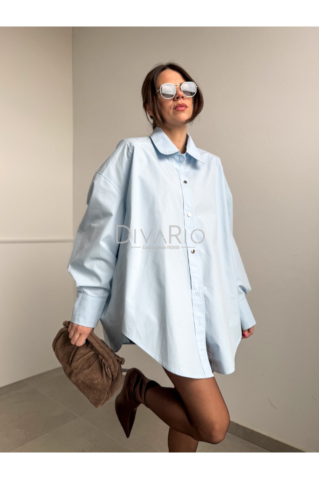 Oversize predĺžená bavlnená košeľa v baby blue modrej farbe, zapínanie na gombíky a gombíkové klipy. Dlhý rukáv. Top kvalita.