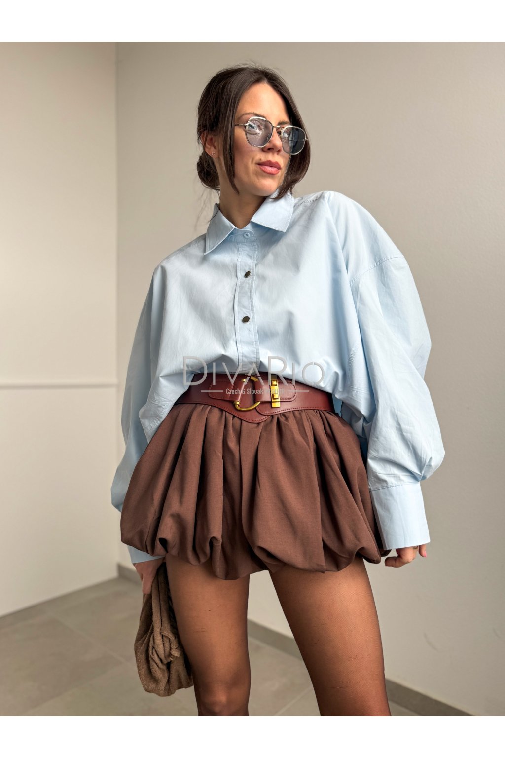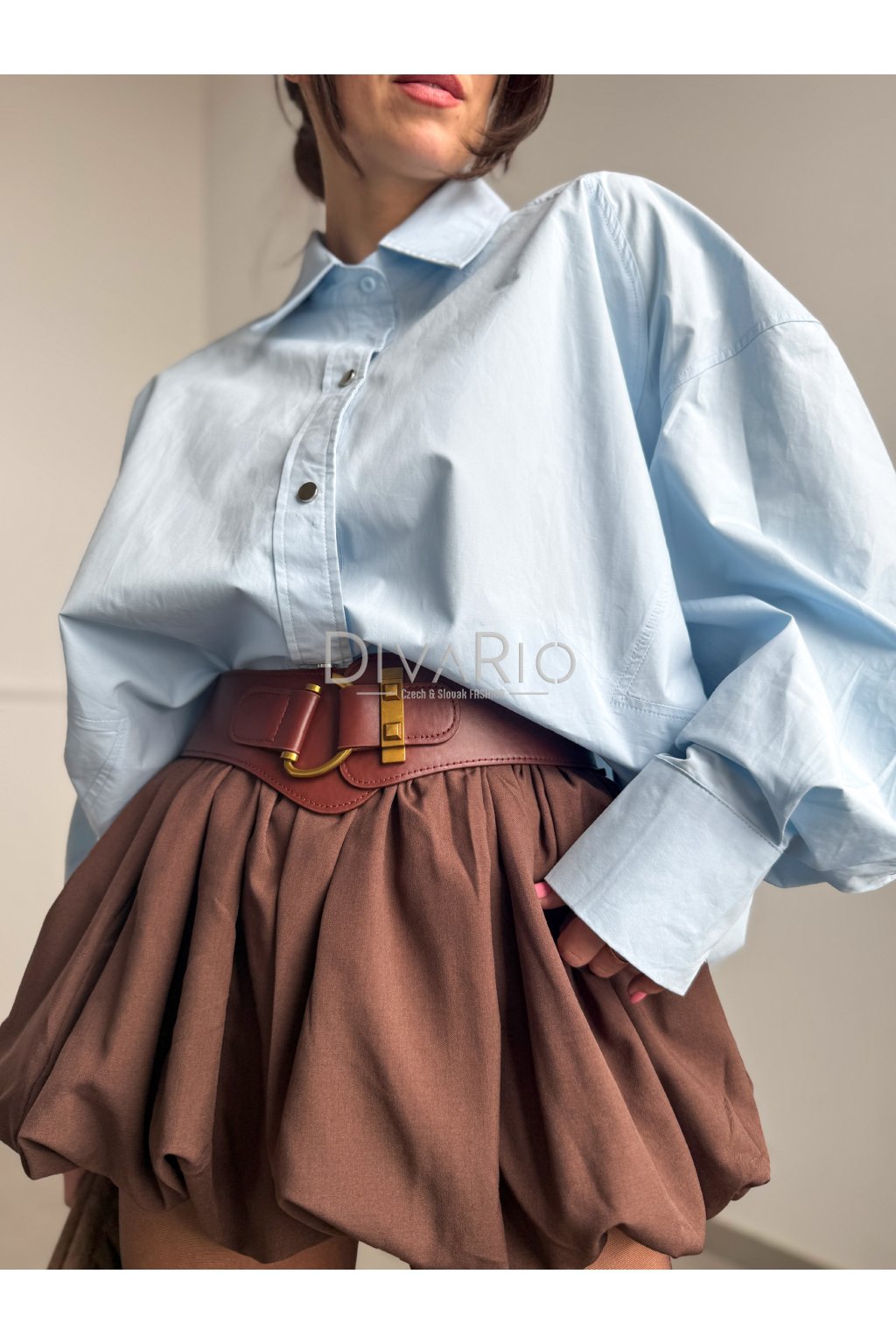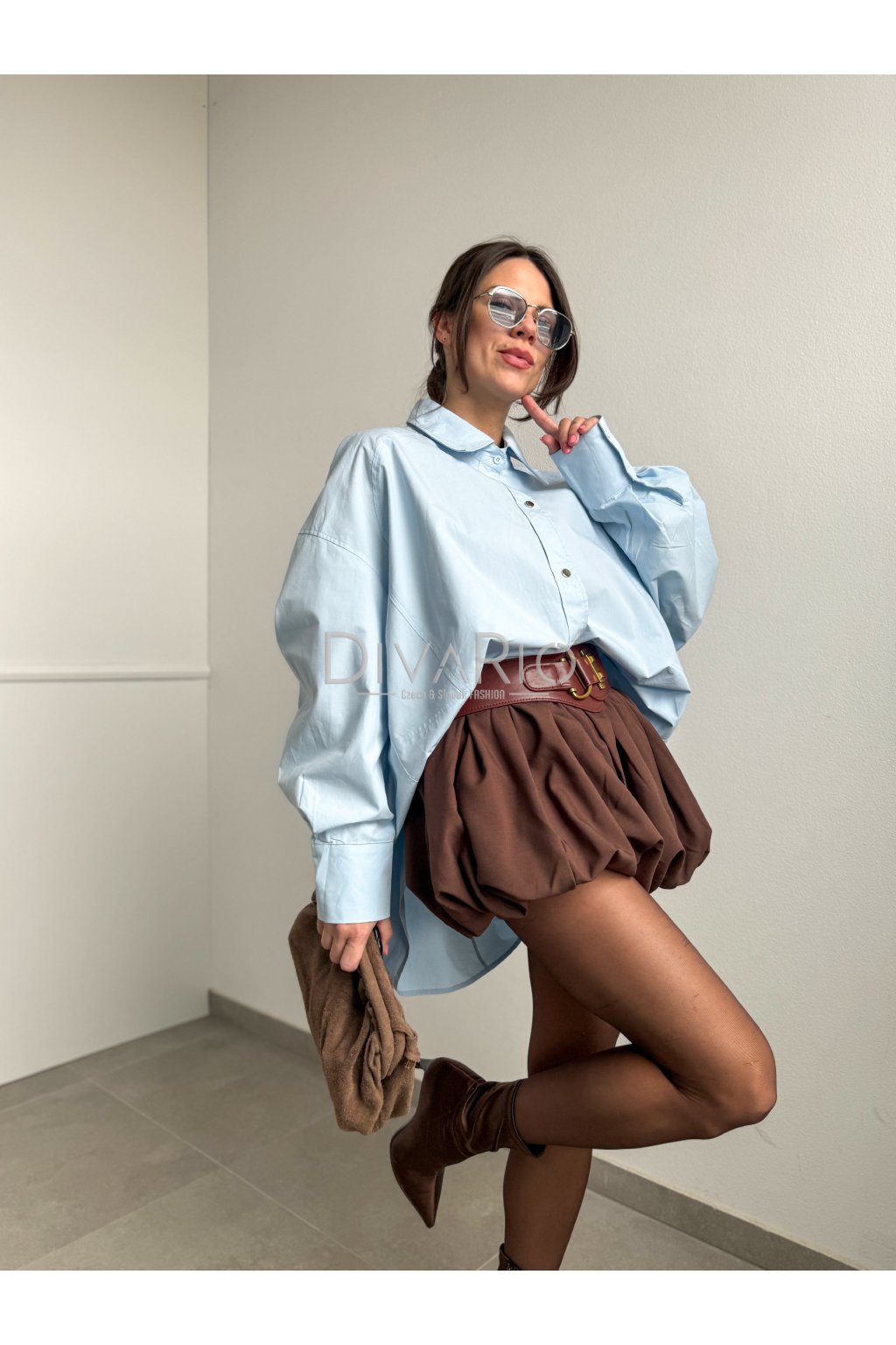Oversize predĺžená bavlnená košeľa v baby blue modrej farbe, zapínanie na gombíky a gombíkové klipy. Dlhý rukáv. Top kvalita.