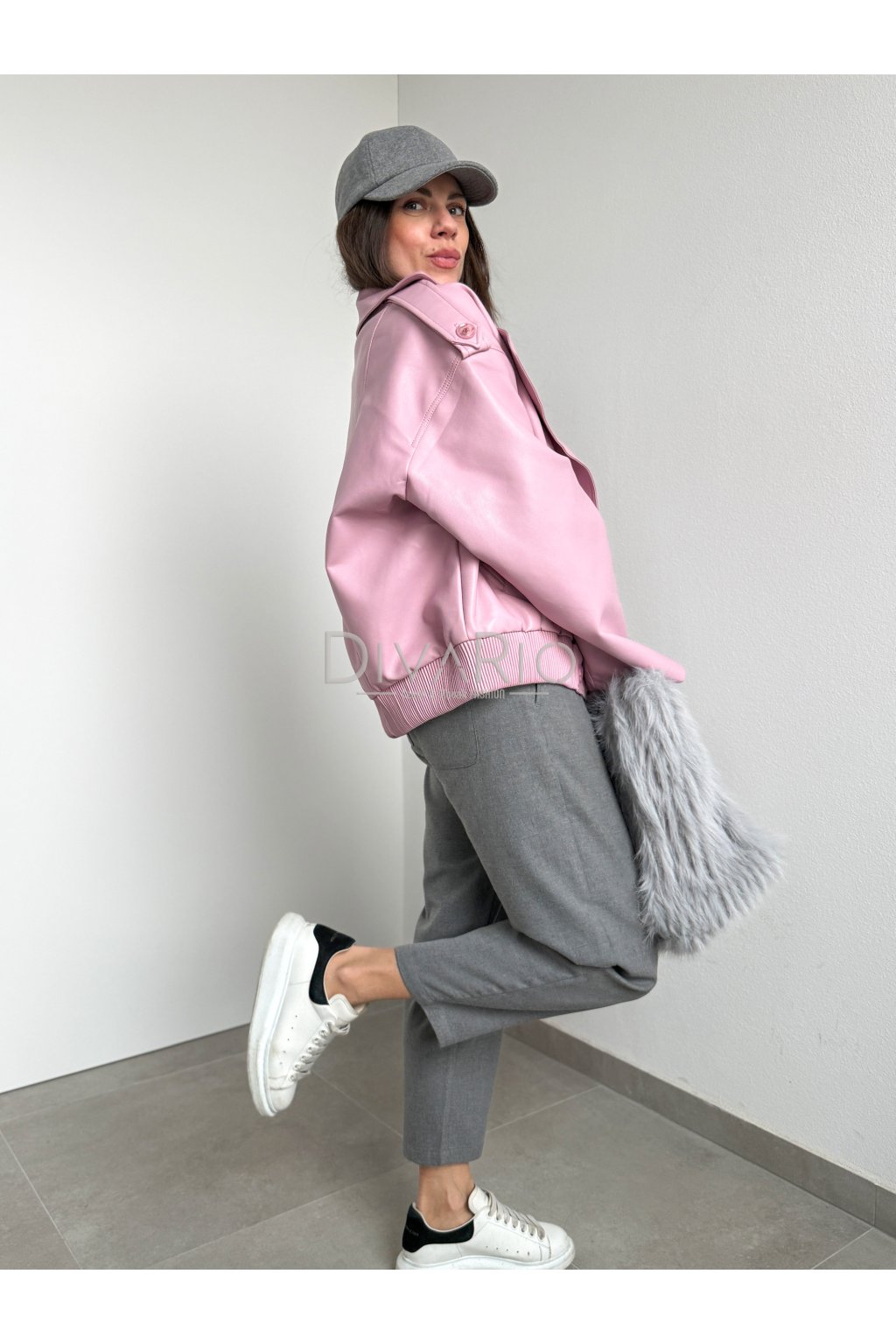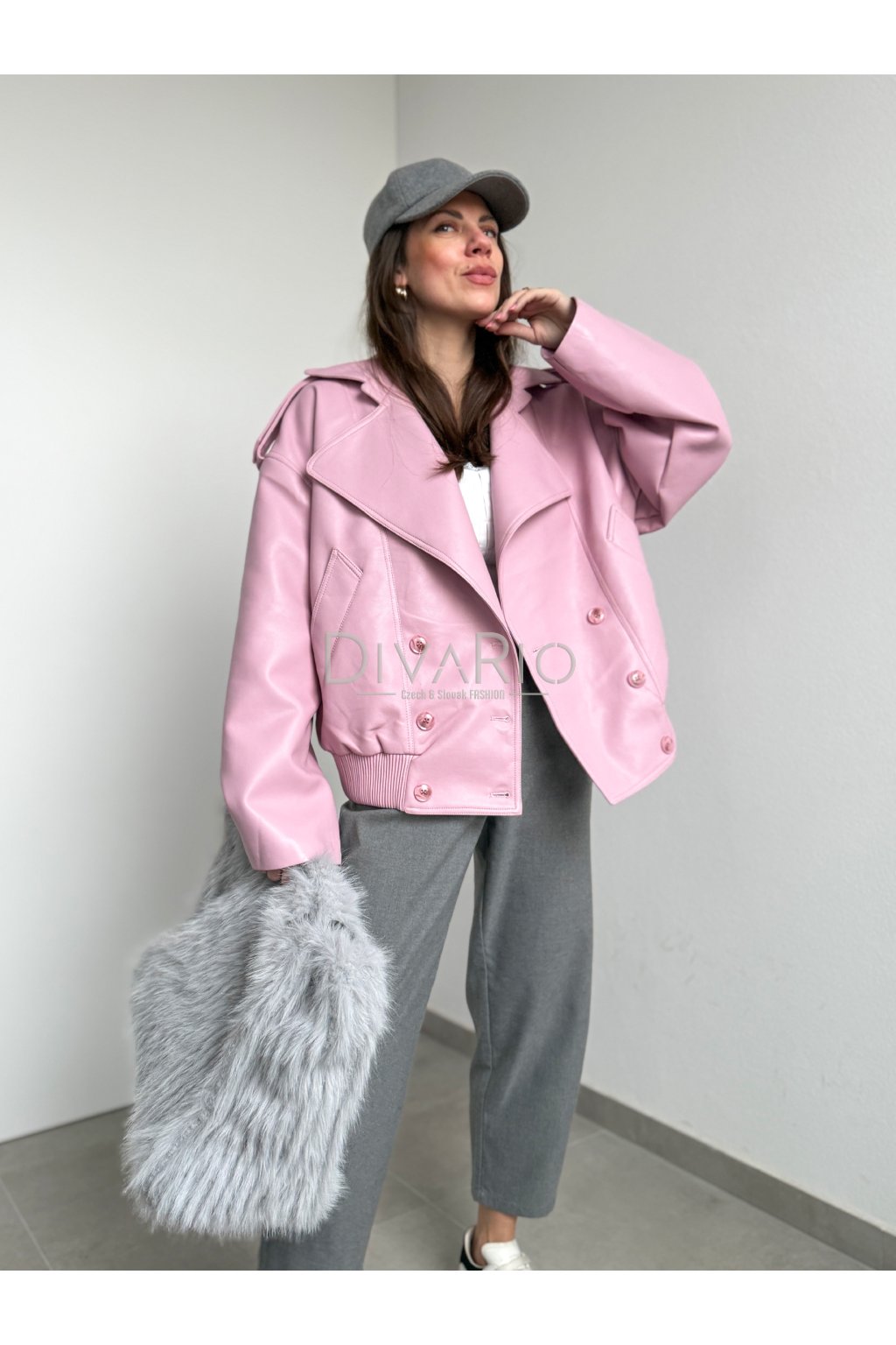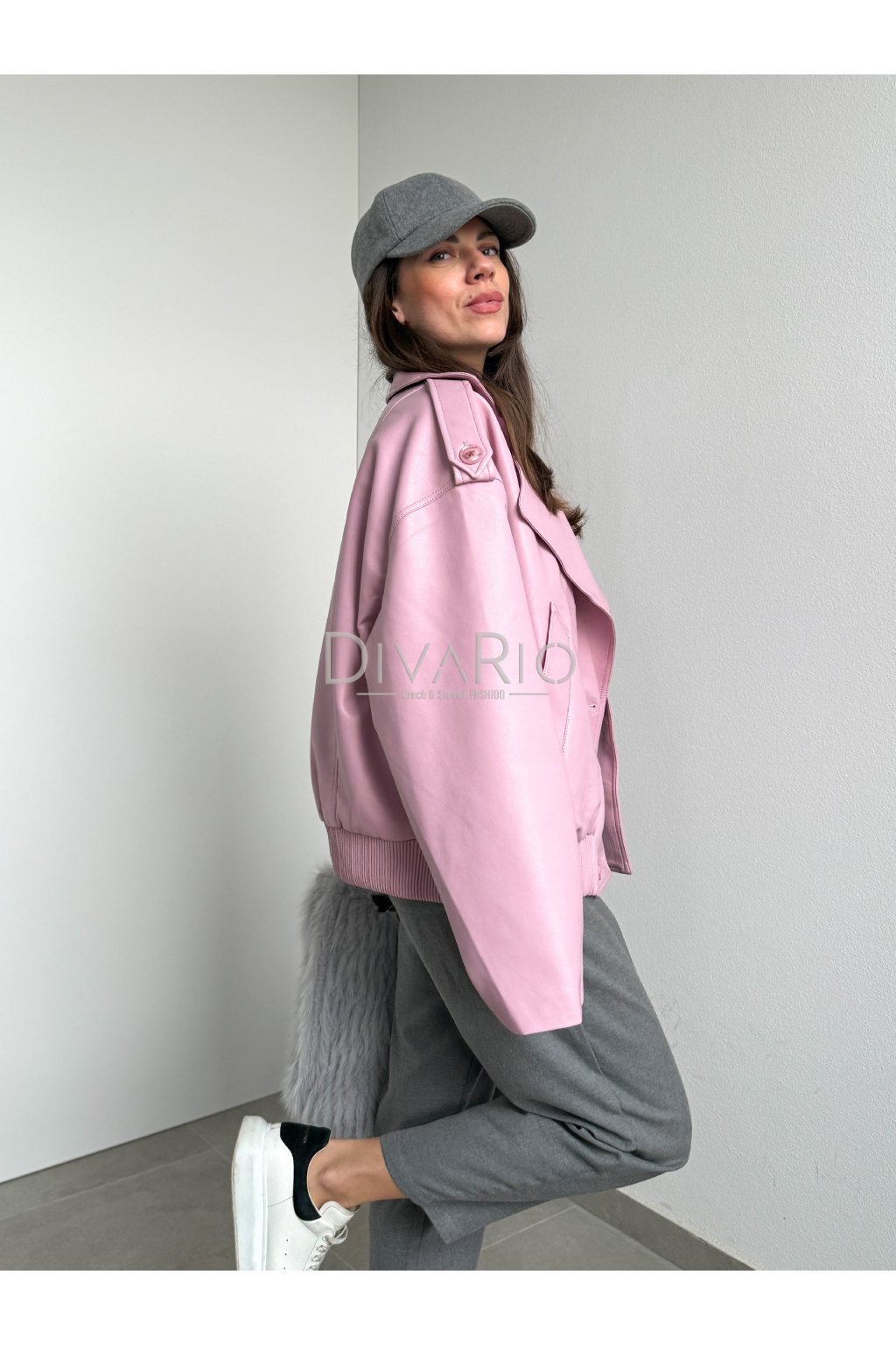 Ružová koženková bunda Elie 4682