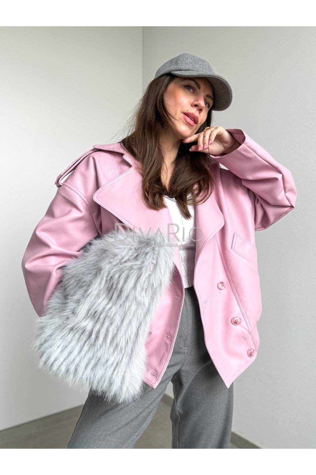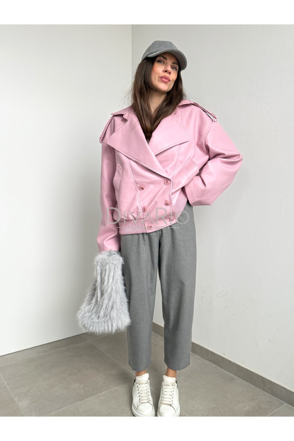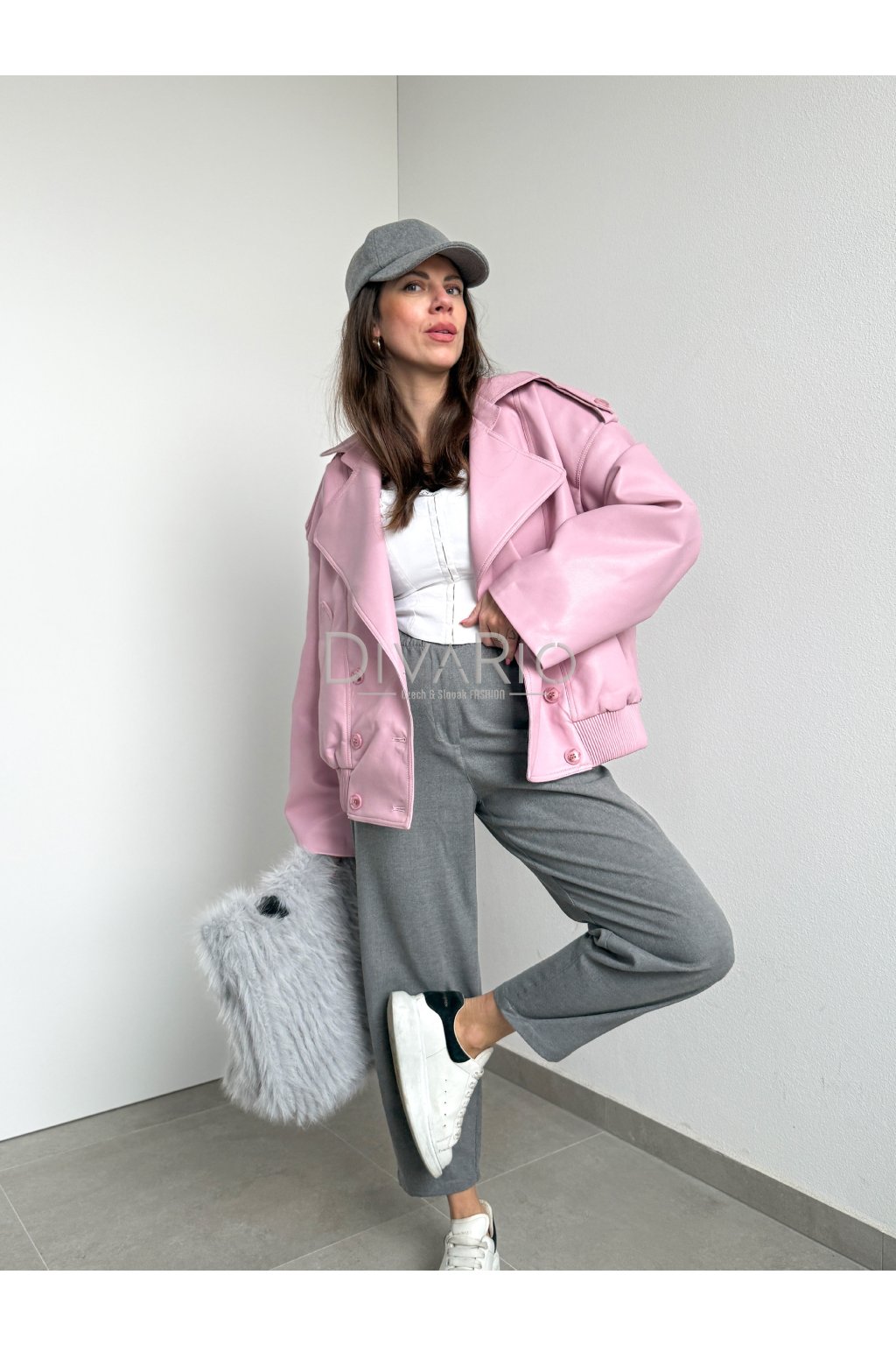 Ružová koženková bunda Elie 4682