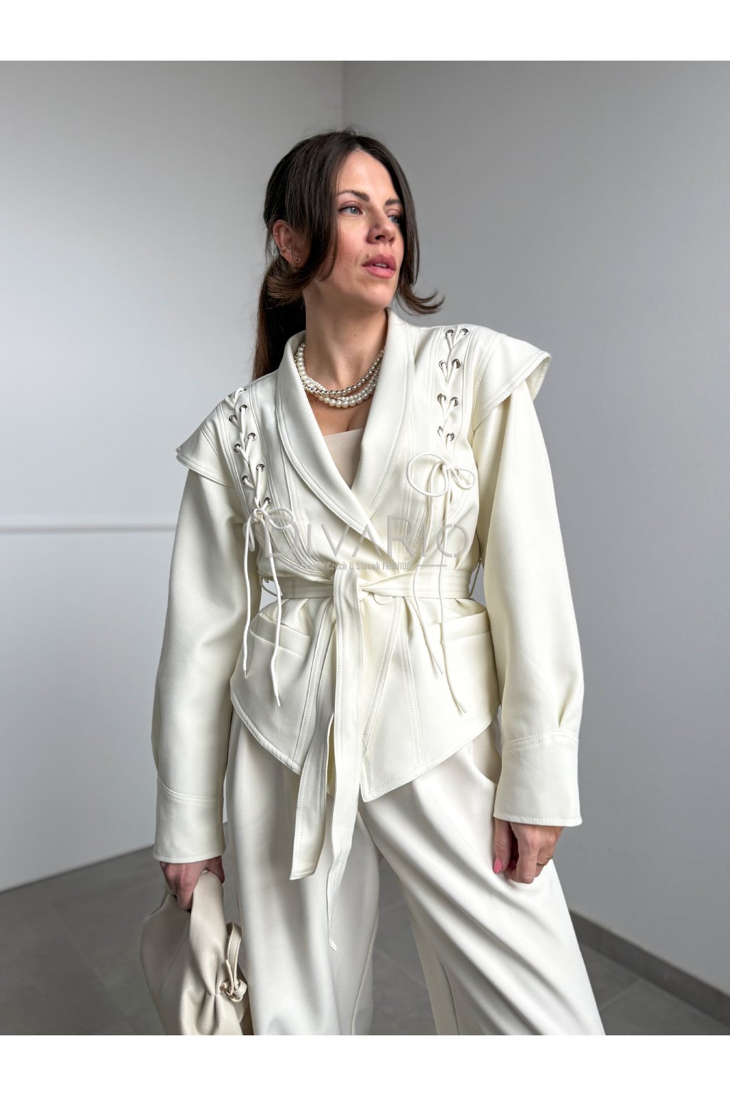 Sako s viazaním Cream Braid 4659