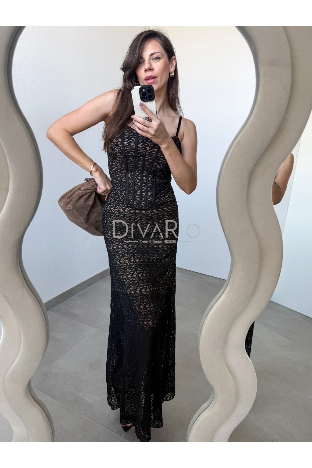 Dlhé krajkované šaty so špagetovými ramienkami. Korzet, zapínanie na zips.