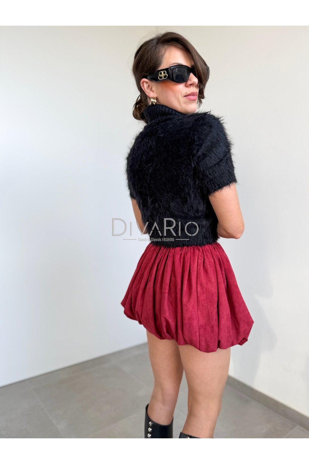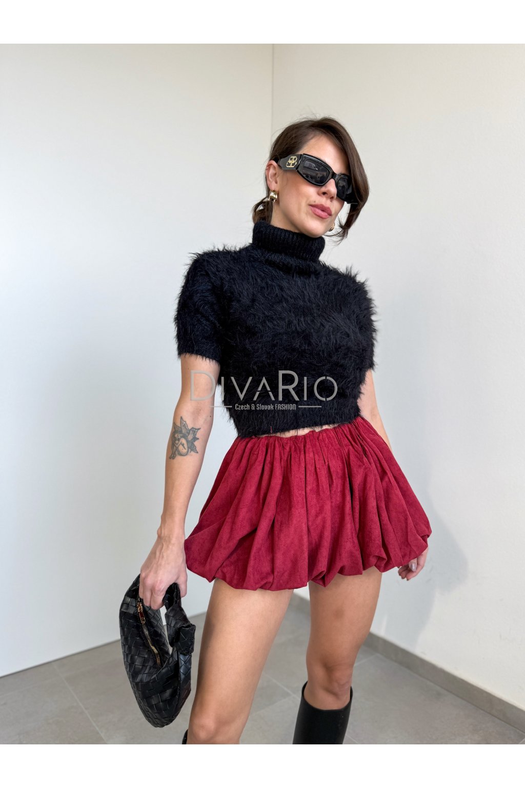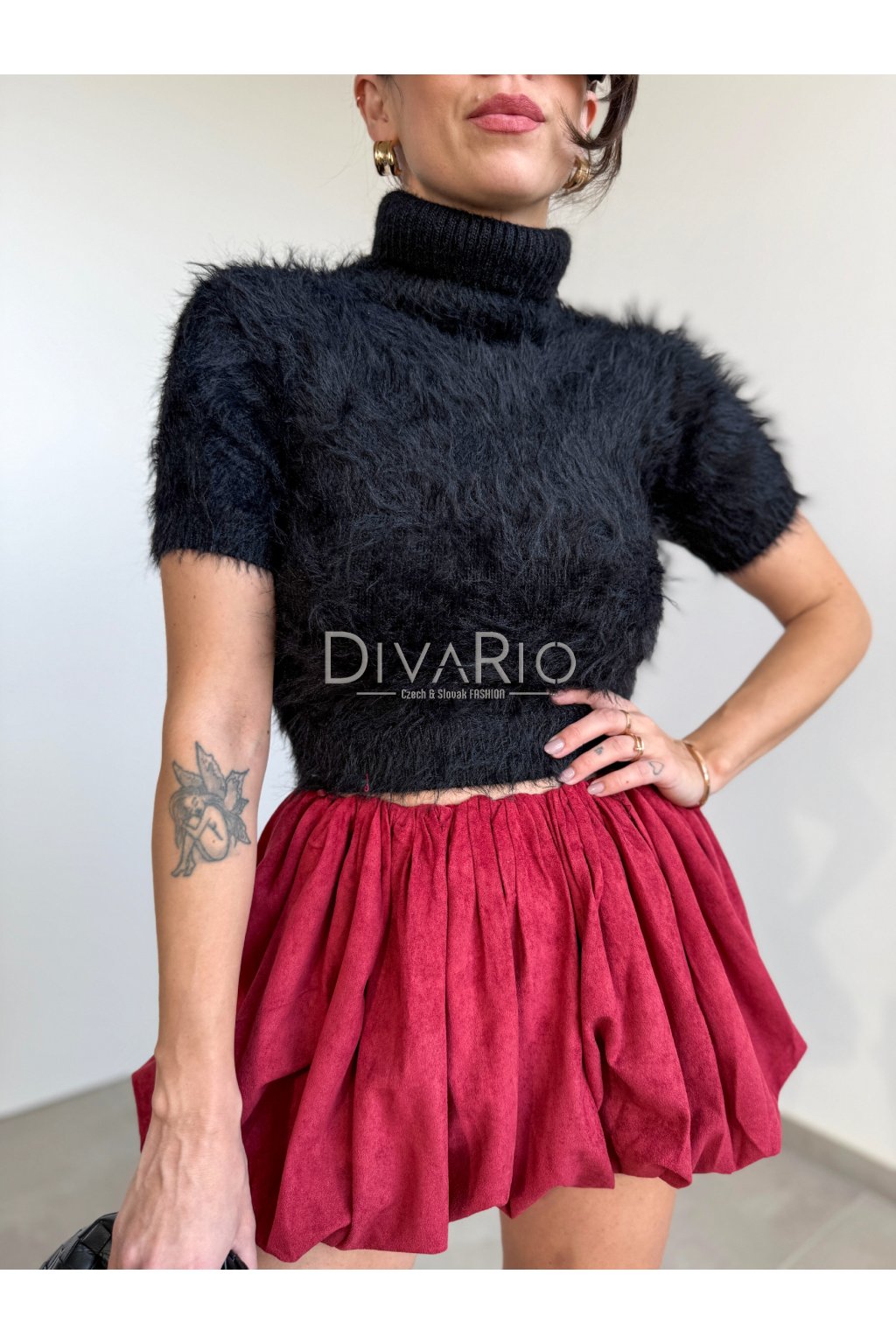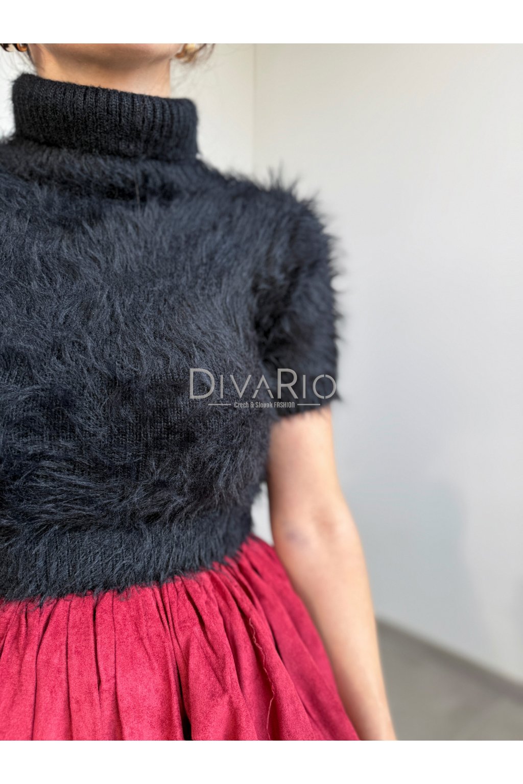 Huňatý kratší svetrík v čiernej farbe, krátky rukáv, rolák.