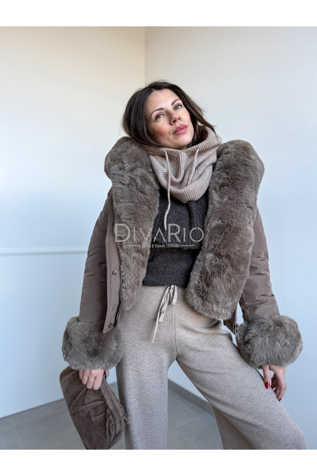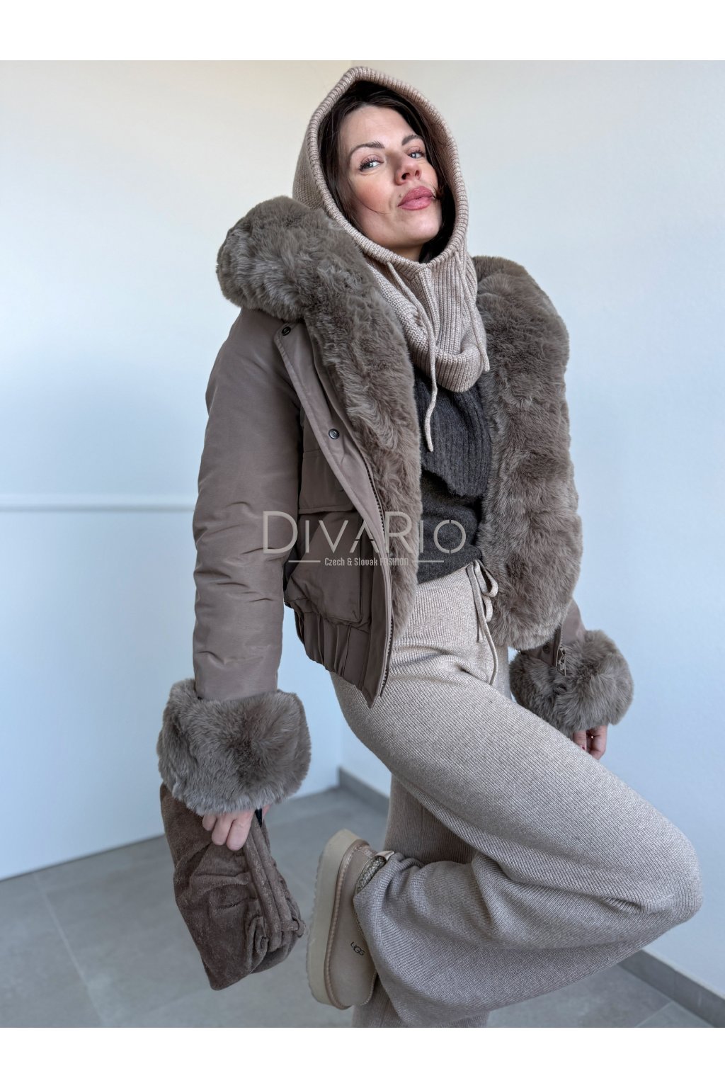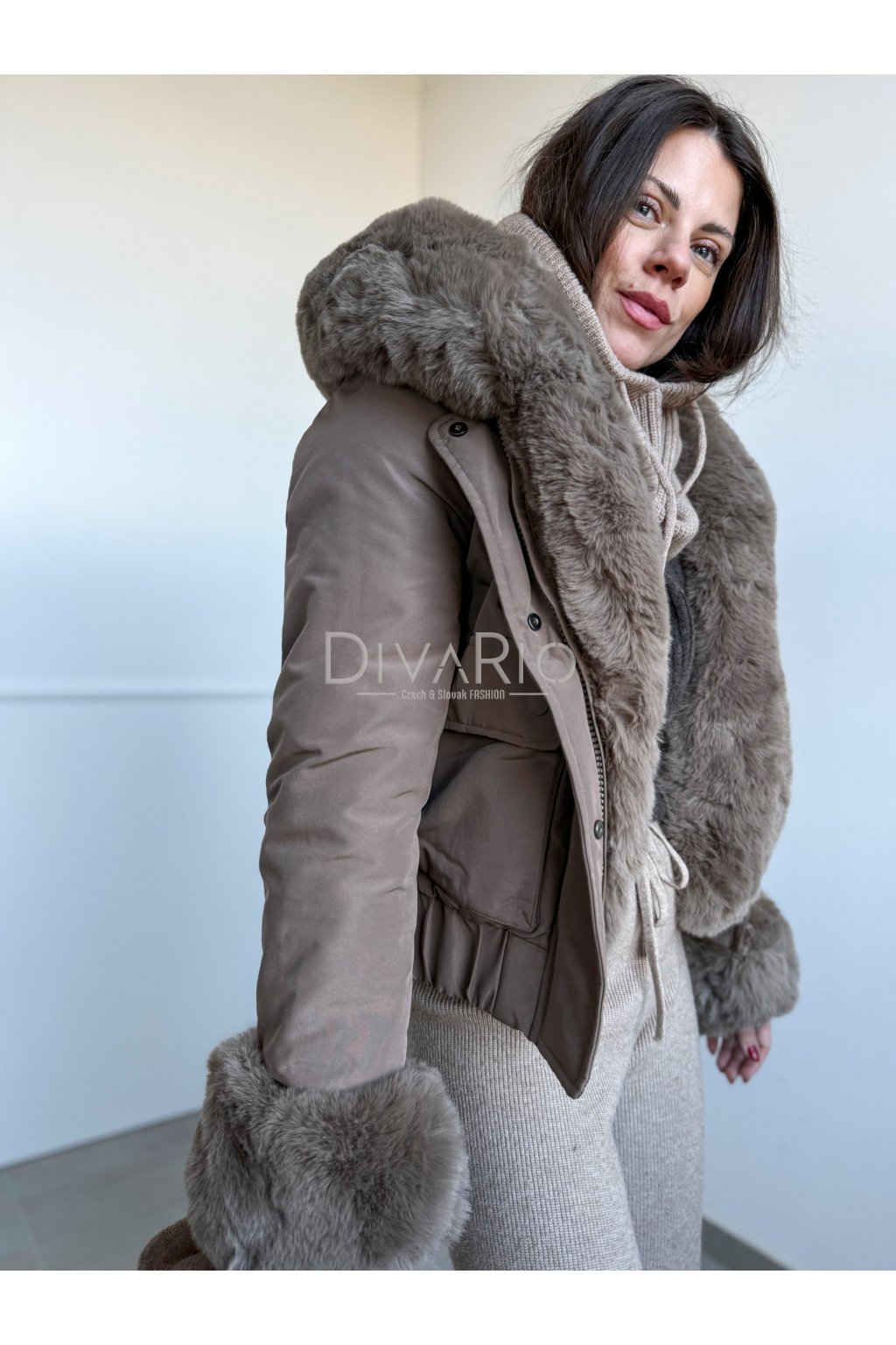 Taupe hnedá bunda s mohutnou kožušinou 4639