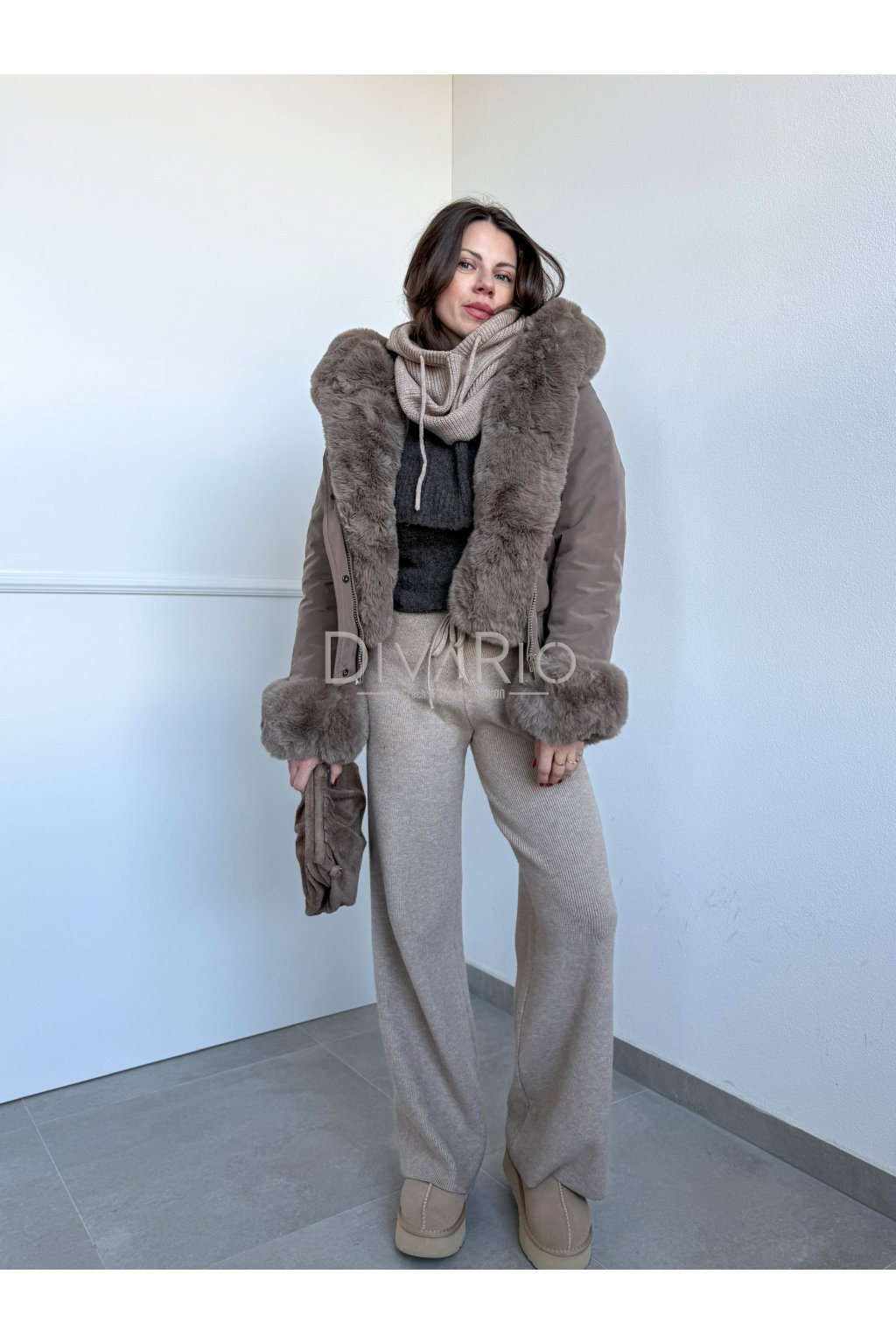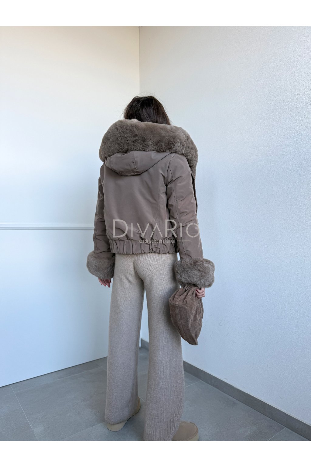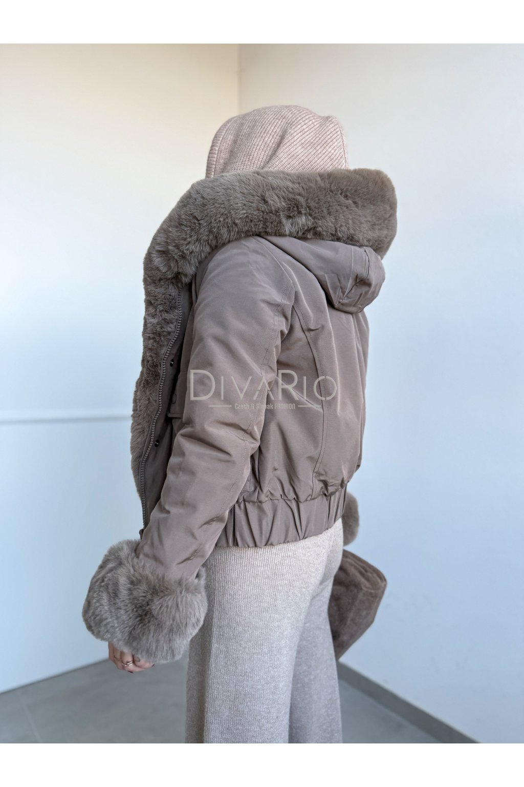 Taupe hnedá bunda s mohutnou kožušinou 4639