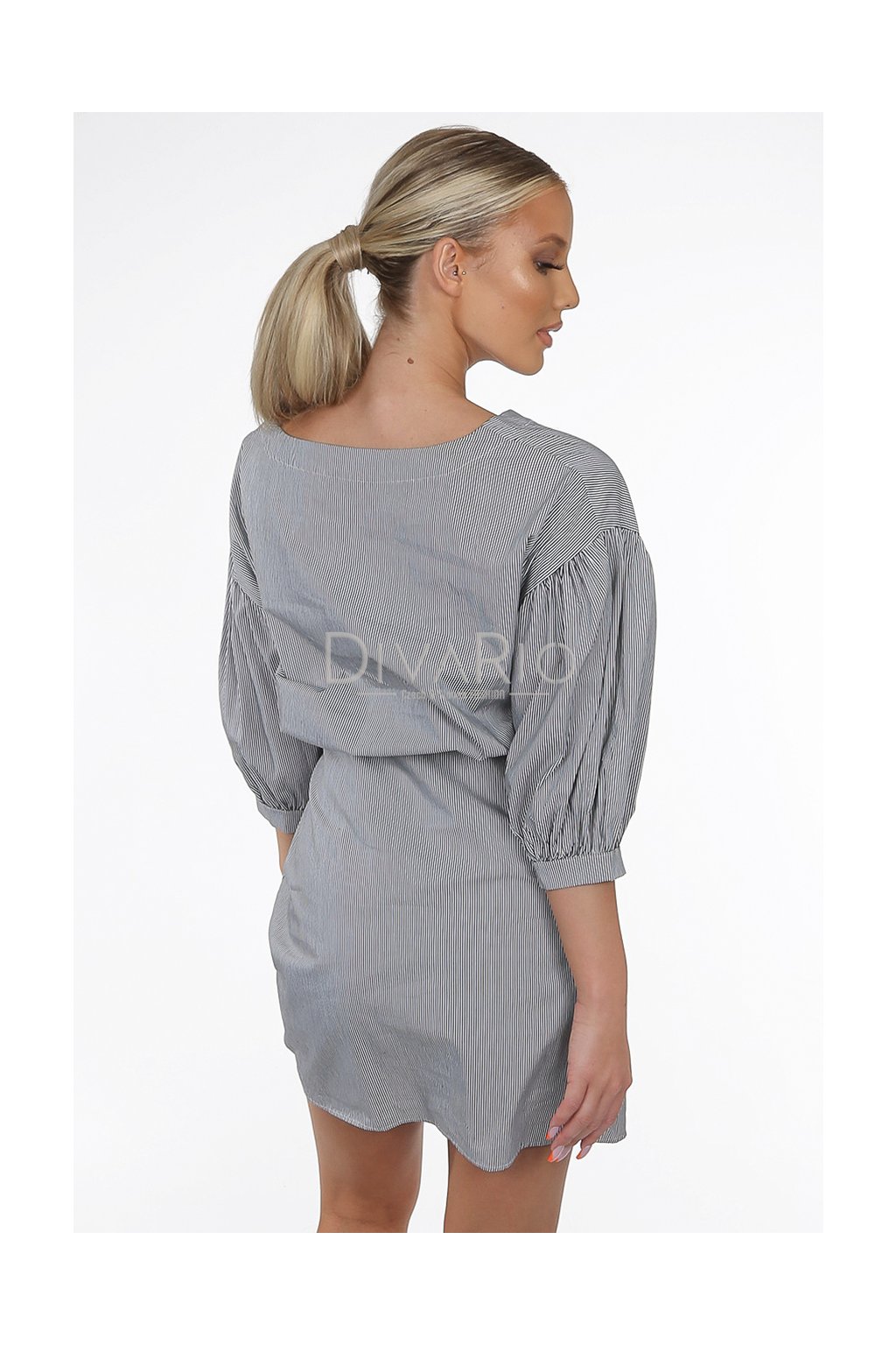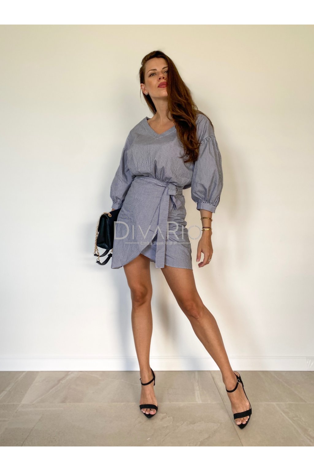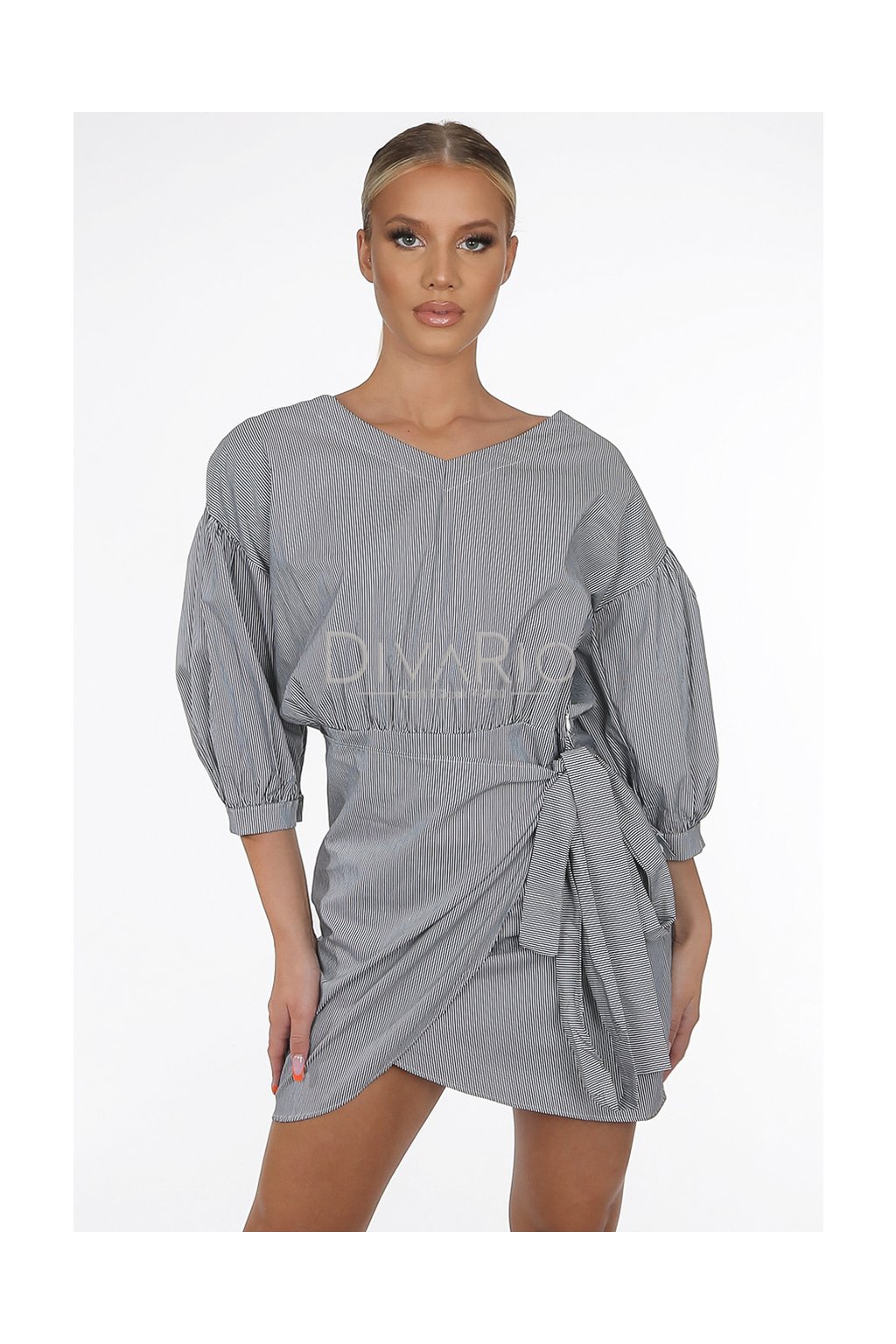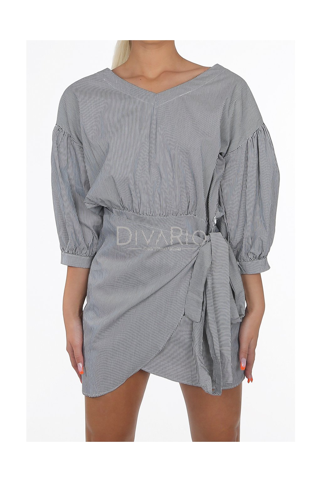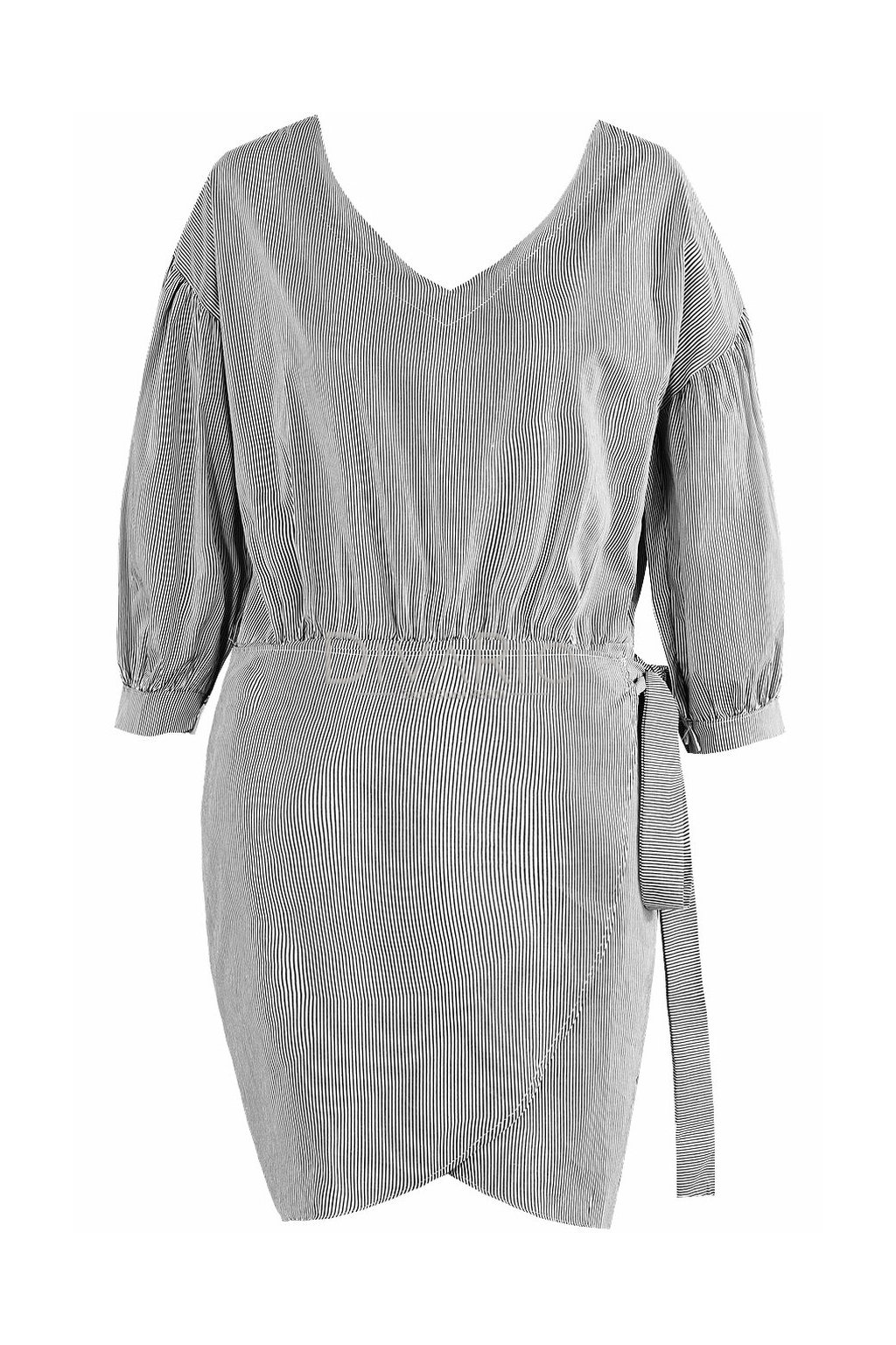 Mini zavinovacie šaty v top kvalite. Trojštvrťové rukávy. Pasikavý motív čierno biela kombinácia.