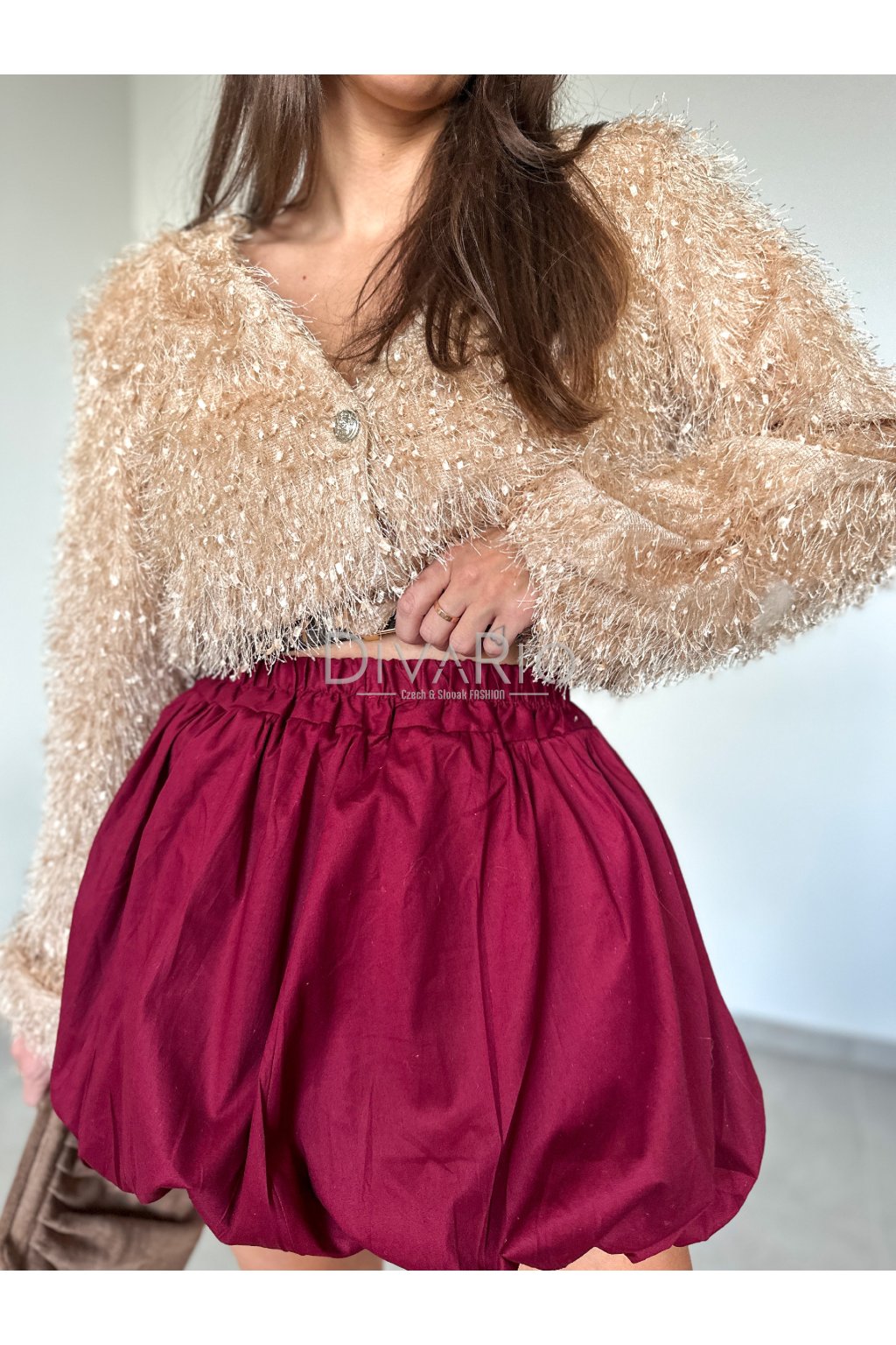 Balónová bordová krátka sukňa.